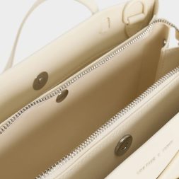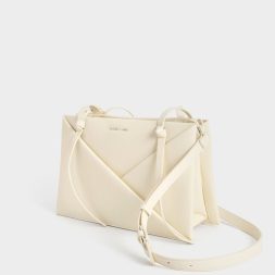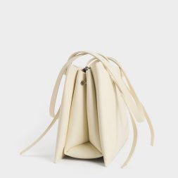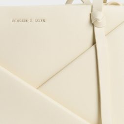 Equally stylish and functional, the Midori tote is set to become your go-to everyday bag. Refreshing the classic rectangular tote silhouette, geometric folds add dimensionality to the minimal cream finish. To complement the clean lines of the design, sculptural knots adorn the bag straps for subtle visual interest. Equipped with a zip closure that opens up to a roomy interior, this polished carrier will hold all that you need for the day with ease. Carry it by the top handles, or clip on the detachable and adjustable strap for hands-free convenience.