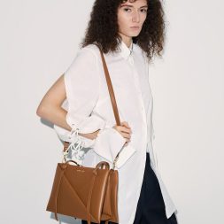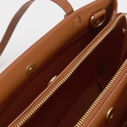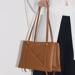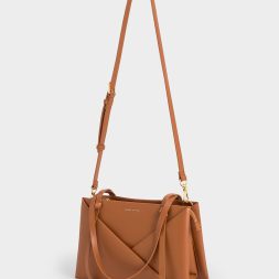 Offering functionality in a visually appealing package, the Midori tote is the perfect addition to your daily rotation. Its luxurious tan finish is complemented by the clean, elegant lines of the geometric folds, which tie in beautifully with the sculptural knots on the handles. Featuring a capacious interior that is secured by zip closure, this polished carrier will hold all that you need for the day and more. Carry it by the top handles, or clip on the adjustable strap for hands-free ease.