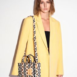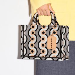 From the visually arresting geometric print to the structured and sturdy silhouette, the Jump print tote definitely makes a bold style statement. Perfectly sized to hold all your essentials and then some, this bag strikes the perfect balance between form and function. Carry yours by the top handles, or clip on the adjustable strap to turn it into a crossbody or shoulder bag when you need to keep your hands free.