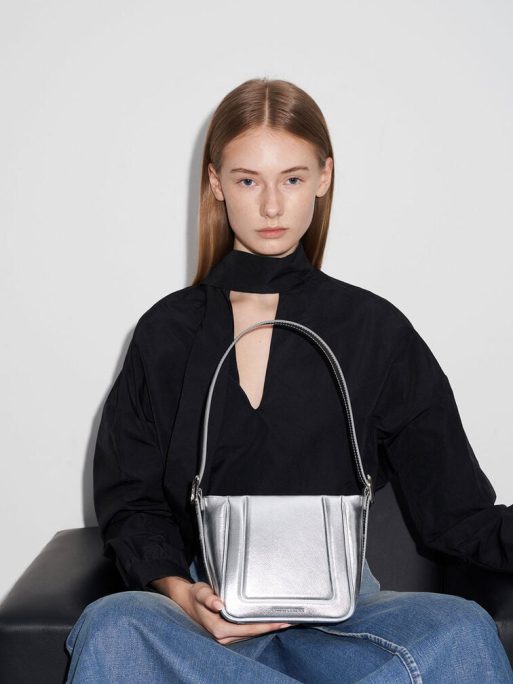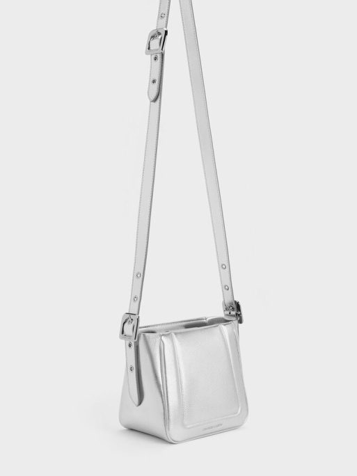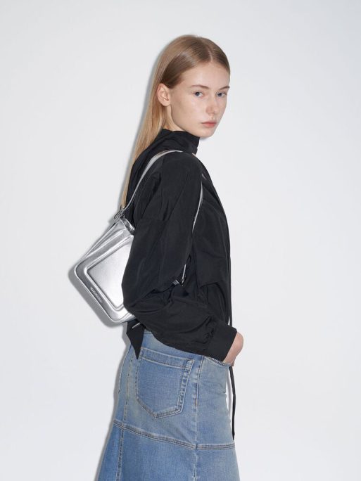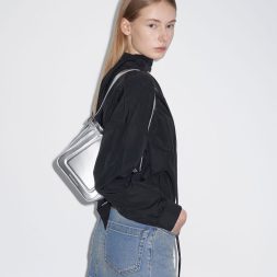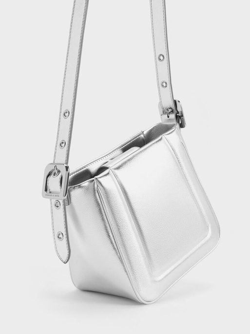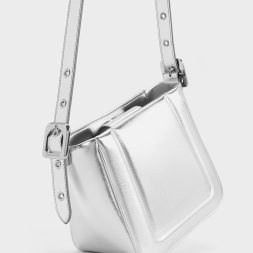 Eye-catching yet versatile enough for day-to-night use, the Petra bucket bag will set you apart. Featuring a highly reflective metallic finish that highlights the clean lines of the minimalist exterior, this standout carrier will catch the light wherever you go. Equipped with an adjustable strap, you can either flaunt it front and centre, or wear it as a shoulder bag for a more casual option.