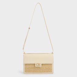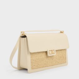 Get into summer mode while still looking polished with this raffia and leather shoulder bag. Juxtaposing a rustic woven texture against smooth calf leather, this piece — versatile in neutral-toned beige — will add a striking element to all your outfits. Adjust the shoulder strap to your preference, or remove it entirely to transform this chic carrier into a clutch. However you choose to style it, it will always be a great style companion.