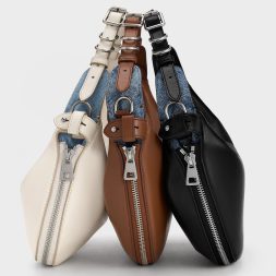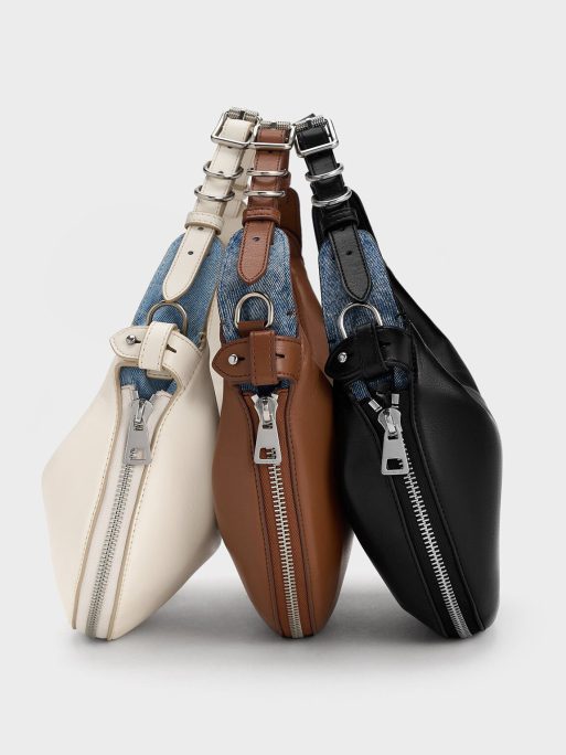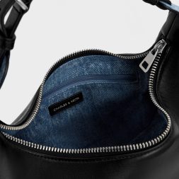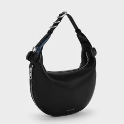 You will want to add this sleek black bag to your accessory arsenal. The crescent-shaped silhouette is softened with slouchy folds that give it an effortlessly stylish, laidback vibe. To lend the minimalist design a distinctive edge, the multi-buckle strap and side-zip detail are subtle yet striking. Complete with a detachable, adjustable strap, you can opt to carry it tucked under the arm or as a casual shoulder bag.