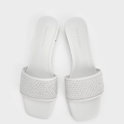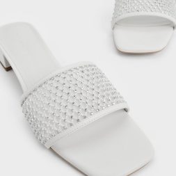 Glam up your outfits with these heeled mules. The casual slip-on style has been elevated with mesh straps across the vamps that are adorned with crystal embellishments. Enhancing the clean white finish with a sparkly touch makes this a wearable yet striking pair. Set on low block heels, they will also boost height without compromising walkability.