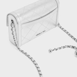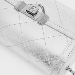 The metallic trend is showing no signs of slowing. Stay one step ahead of the fashion curve with this Tallulah quilted push-lock clutch featuring a striking metallic silver finish. The classic envelope design, combined with a timeless quilted texture, exudes effortless elegance. Use it to add a touch of shine and sophistication to your stylish festive outfits. With a detachable chain strap, you can easily transform the Tallulah into a functional shoulder bag.