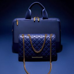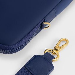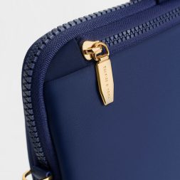 Add more flair and style to your tech accessory collection with this laptop bag. The vibrant navy brings a welcome pop of colour, while its vivid hue complements the shiny gold-toned hardware for a visually striking aesthetic. With ample room to fit a 15-inch laptop and paper documents comfortably, it also features a back zipped compartment that can hold your other daily essentials for easy access..