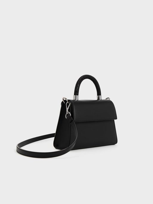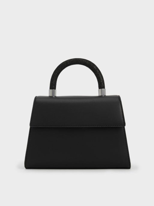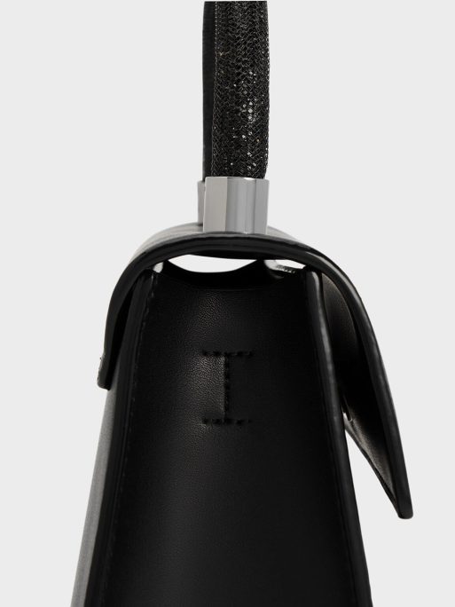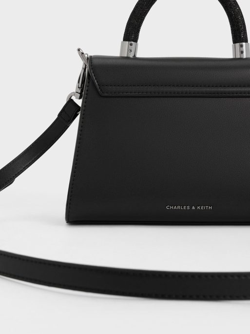 C&K Trapeze Crystal-Embellished Top Handle Bag – Noir