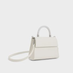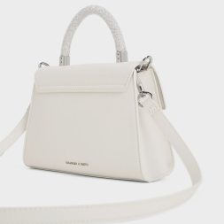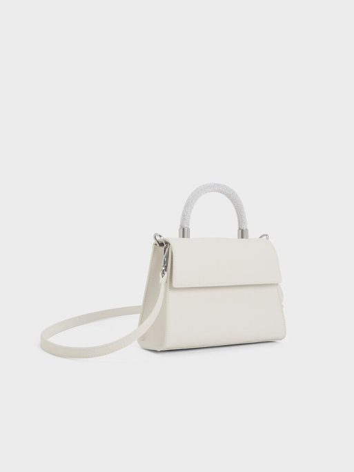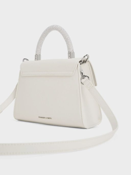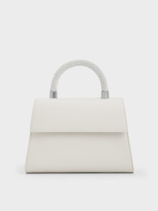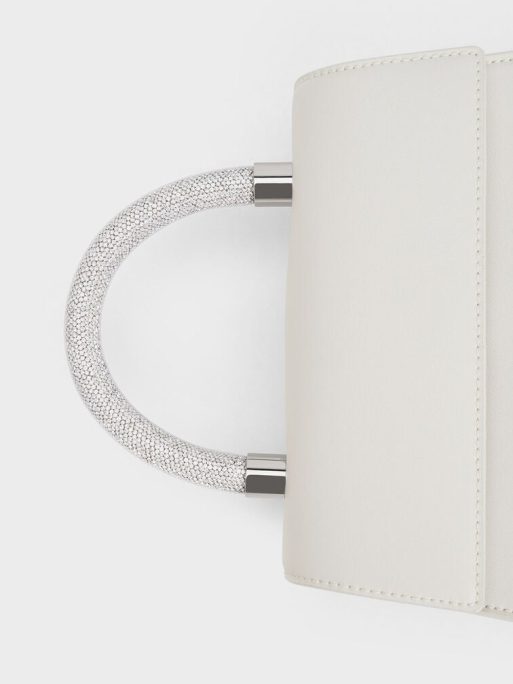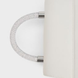 C&K Trapeze Crystal-Embellished Top Handle Bag – White