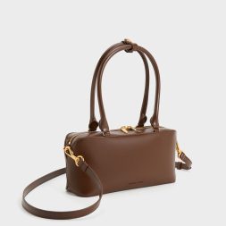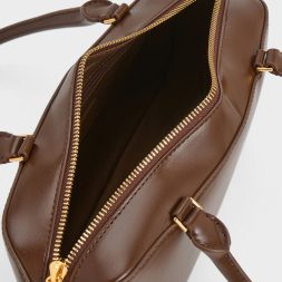 Minimalism at its finest, this Wisteria bag features clean and sharp lines that make it a bag that truly transcends seasons and trends. The curved handles are as functional as they are stylish, providing visual contrast that balances the overall structured design. The dark brown finish gives this bag a vintage appeal, while the gold-toned harware adds a hint of luxurious shine.