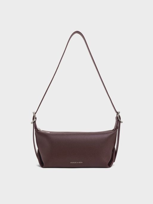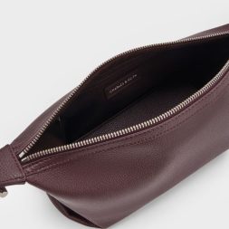 This Larsen shoulder bag in plum features a buckled strap, a slouchy silhouette and a handy zip closure. Use it to inject a touch of rich colour into minimalist outfits.