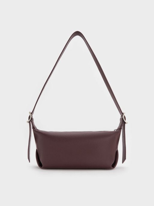 C&K Larsen Buckle-Strap Slouchy Shoulder Bag Plum