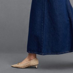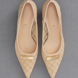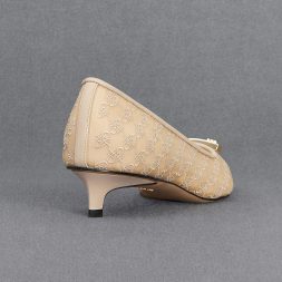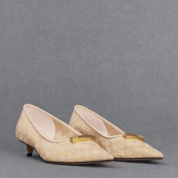 If you are looking for pointed-toed shoes that stand out, these pumps fit the bill. They have a soft mesh finish that features our distinctive monogram print. This pair also sports gold-toned bar embellishments on the vamps, which give these shoes a polished and sophisticated look. Set on 3.5cm kitten heels, these are shoes you can wear all day in comfort.