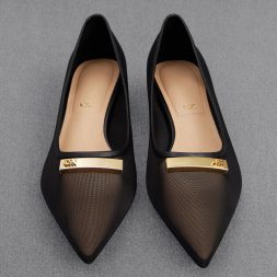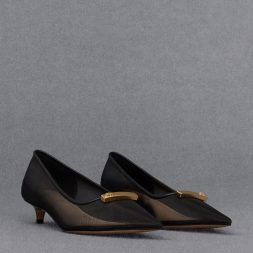Feminine, flattering and great for a night out, these elegant pointed-toed pumps are a standout pair. Featuring a soft mesh finish with a see-through effect, bringing a touch of glamour to the design. Ideal for work and special occasions, these shoes’ 3.5cm kitten heels make them great for all-day wear. Bonus points for the distinctive gold-toned bar embellishments that add striking touches of shine.