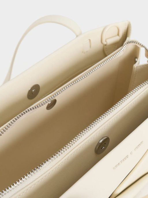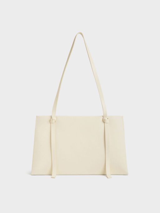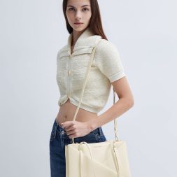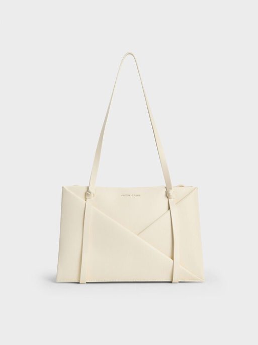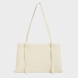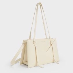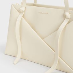 Equally stylish and functional, the Midori tote is set to become your go-to everyday bag. Refreshing the classic rectangular tote silhouette, geometric folds add dimensionality to the minimal cream finish. To complement the clean lines of the design, sculptural knots adorn the bag straps for subtle visual interest. Equipped with a zip closure that opens up to a roomy interior, this polished carrier will hold all that you need for the day with ease. Carry it by the top handles, or clip on the detachable and adjustable strap for hands-free convenience.