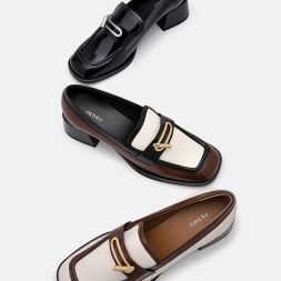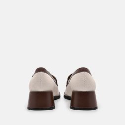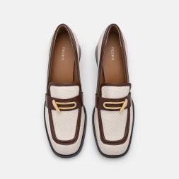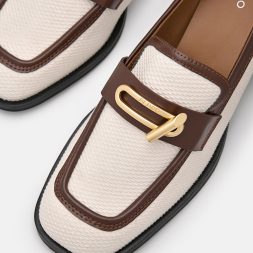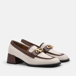 Sleek and stylish, exude an elegant appeal with the Brie Leather Heel Loafers in beige. Crafted with canvas, this slip-on fashioned with a square toe and block heel features a metallic accent to keep you stunning wherever you go.