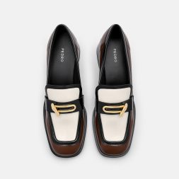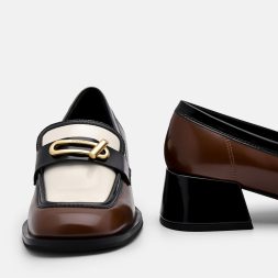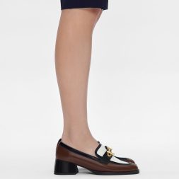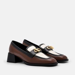Sleek and stylish, exude an elegant appeal with the Brie Leather Heel Loafers in mylticolour. Crafted with boxed calf leather, this slip-on fashioned with a square toe and block heel features a metallic accent to keep you stunning wherever you go.