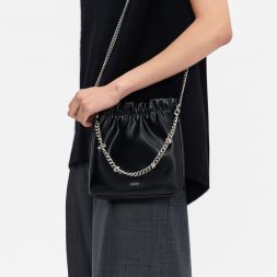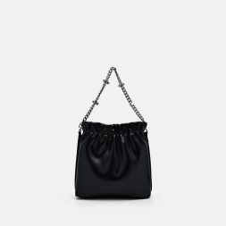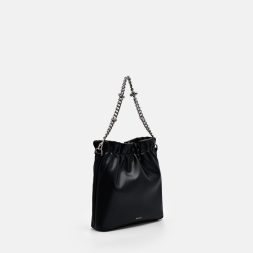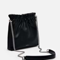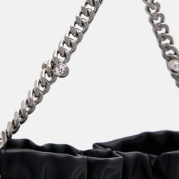 Add a sophisticated finish to any outfit and turn heads with the unique design of the Cami Shoulder Bag in black. Featuring a chainlink handle and ruched design with cinched sides for added tailored style, a removable shoulder sling allows you to effortlessly transition from day to night, from casual to chic.