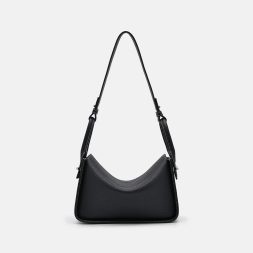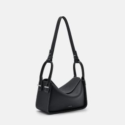 Introducing the Demi Leather Shoulder Bag – a fusion of modernity and classic charm. Its boxy yet slouched design black adds volume and character, complemented by a unique single strap handle. Minimal branding exudes understated luxury, while a detachable shoulder strap offers versatile styling options.
