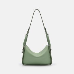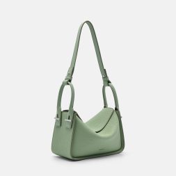 Introducing the Demi Leather Shoulder Bag – a fusion of modernity and classic charm. Its boxy yet slouched design in green adds volume and character, complemented by a unique single strap handle. Minimal branding exudes understated luxury, while a detachable shoulder strap offers versatile styling options.