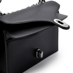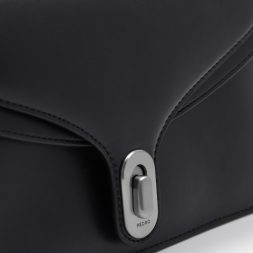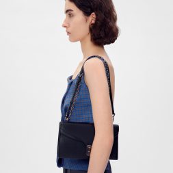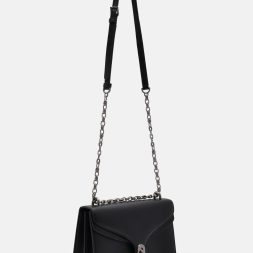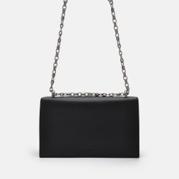Make a confident statement that exudes feminine charm and contemporary allure when carrying the Elin Shoulder Bag in black. Its structured boxy shape exudes character, while the envelope flap, secured by a sleek push-lock closure that adds a touch of timeless elegance. The metallic chainlink accent adorns this dressy accessory while an adjustable shoulder strap provides night-long convenience.