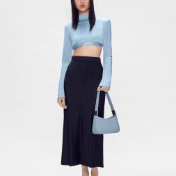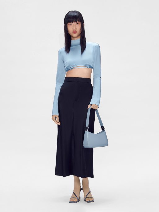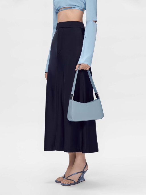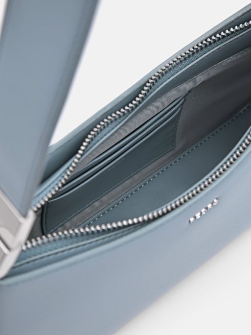 The Jatte Shoulder Bag in slate blue features a roomy design with zipper closure to keep everything you need secure. A relaxed curved design features subtle metallic accents that upgrade the sleek style of this handbag. Pair your outfit with a playful style that can individualize your overall ensemble.