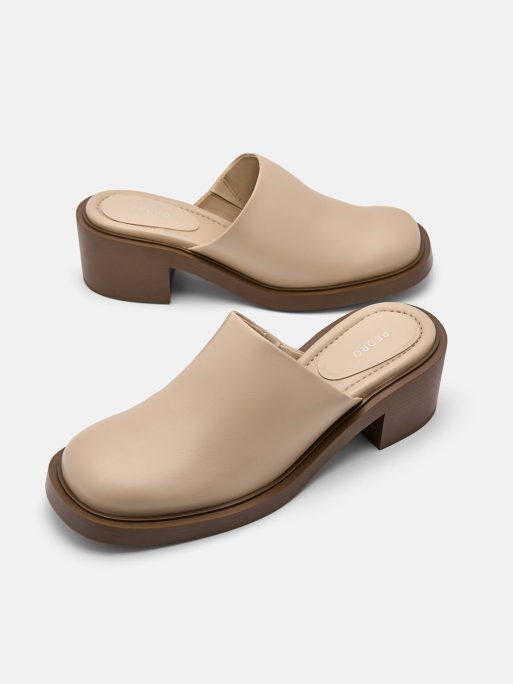 Complement your favourite outfits with the clean, modern styling of the Lali Heel Mules in beige. This round-toe mule is designed with a smooth profile and is set on a sturdy block heel for an elevated look.