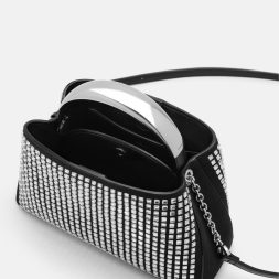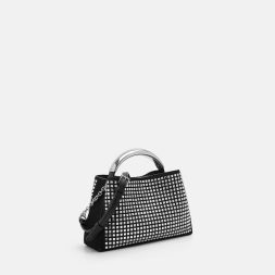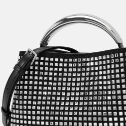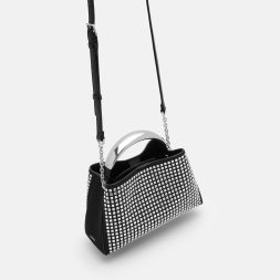 A sleek fusion of modern allure and timeless sophistication, complementing both casual and formal looks while adding a dash of refined elegance to your everyday routine with the Lia Handbag in black. Embodying classic style with a contemporary edge, the bag boasts clean lines accentuated by a metallic handle and rhinestone embellishments that add a touch of luminous sophistication. Versatility reigns with its removable shoulder strap, allowing seamless transitions from day to night.