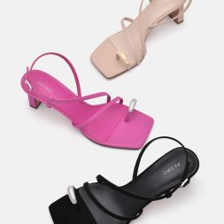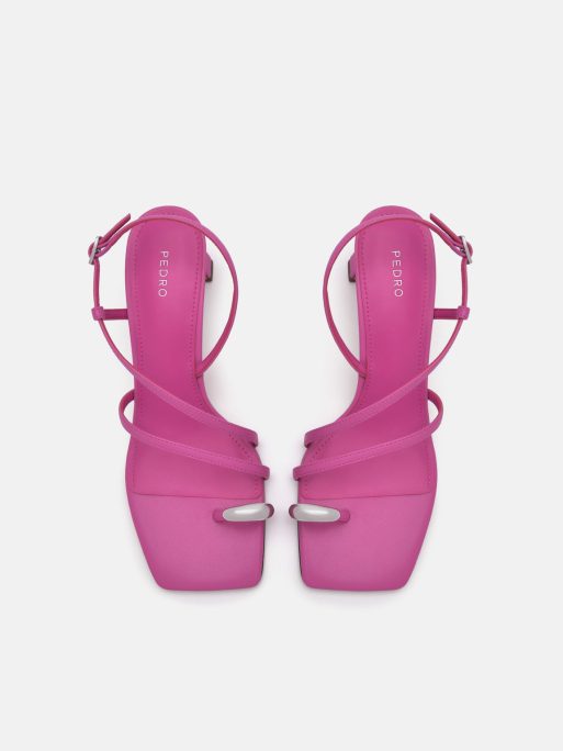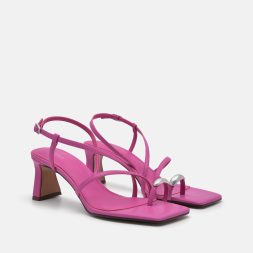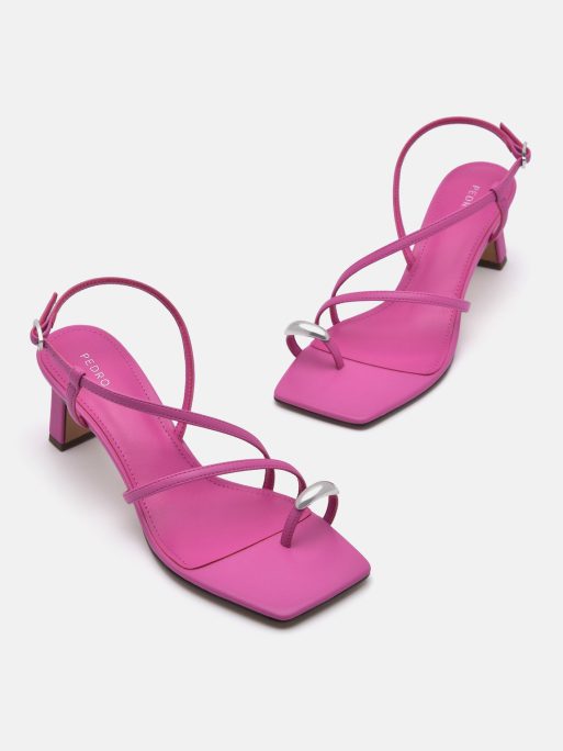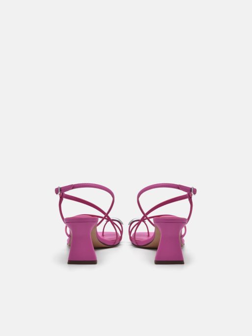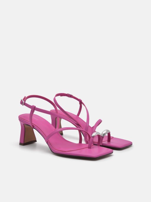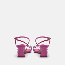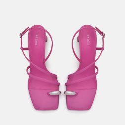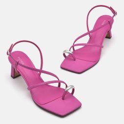 With a delicately crafted strappy upper and a chic slingback design featuring a refined buckle, dazzle your way to the spotlight with the Lia Heel Sandals in fuchsia. The metallic embellishment on the toe loop adds a touch of glamour, complementing the squared toe elegantly. Complete with a sturdy block heel for both feminine allure and comfort, these sandals effortlessly elevate any ensemble.