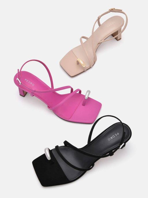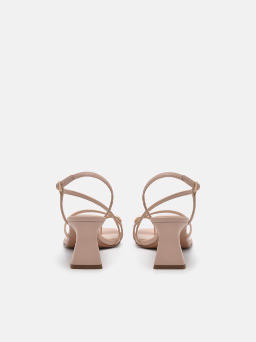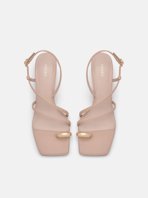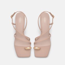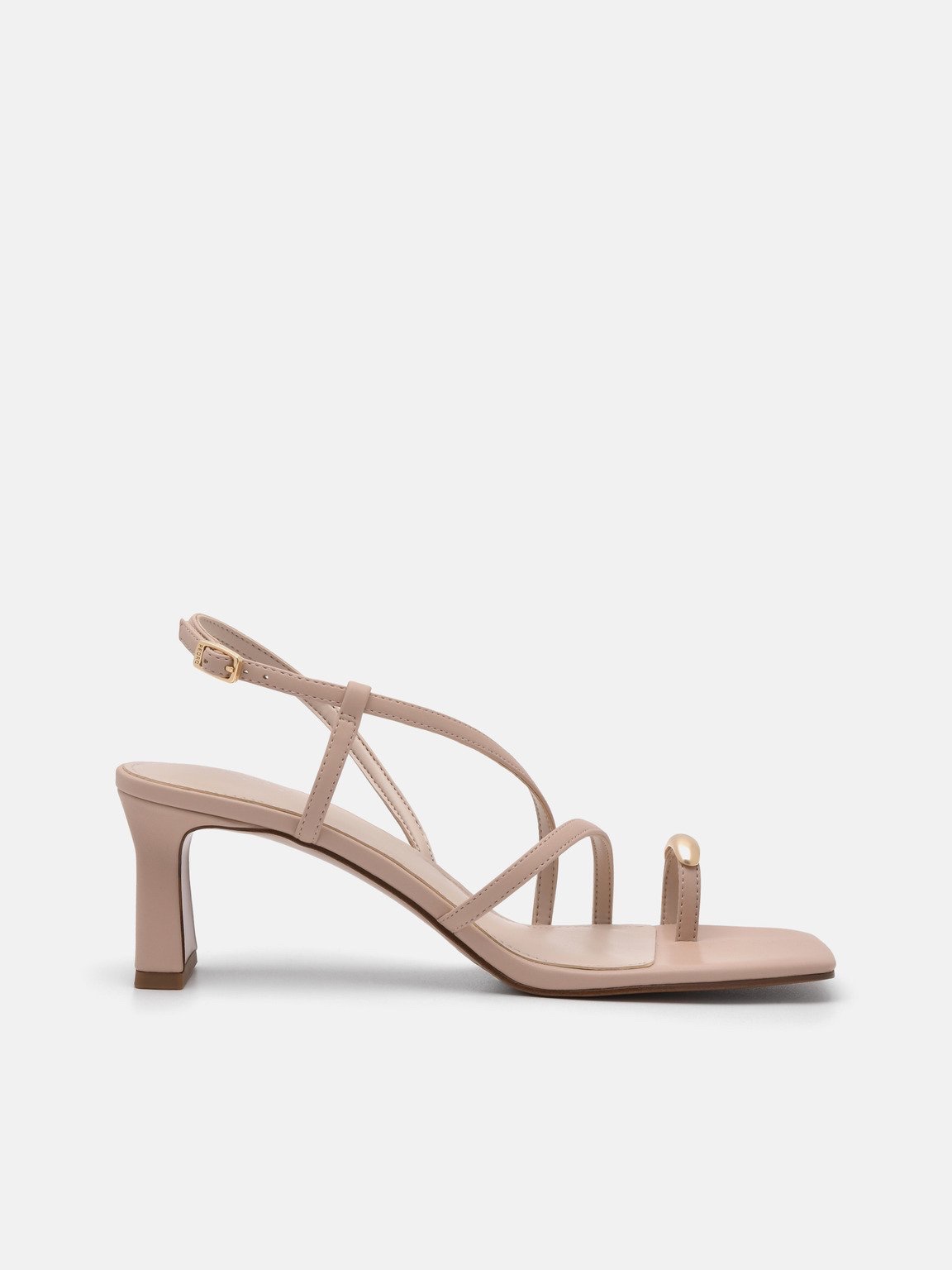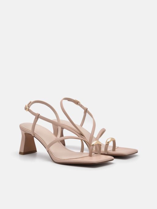 With a delicately crafted strappy upper and a chic slingback design featuring a refined buckle, dazzle your way to the spotlight with the Lia Heel Sandals in nude. The metallic embellishment on the toe loop adds a touch of glamour, complementing the squared toe elegantly. Complete with a sturdy block heel for both feminine allure and comfort, these sandals effortlessly elevate any ensemble.