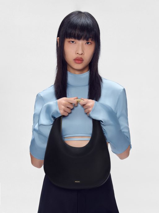 Carry everything you need in trendy appeal with the Lia Hobo Bag in black. Featuring a roomy interior and a slouchy silhouette, the crescent shape and easy-to-grab handle makes this a go-to option. The bag includes a removable and adjustable shoulder strap for multiple looks.