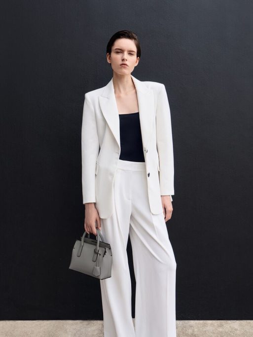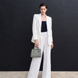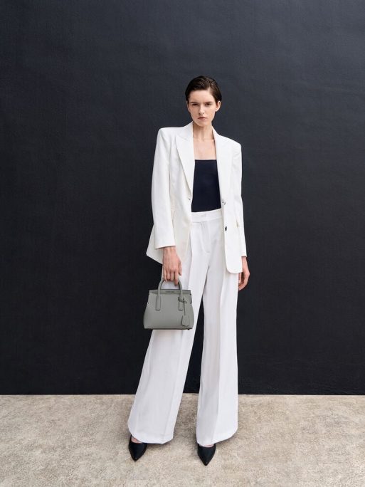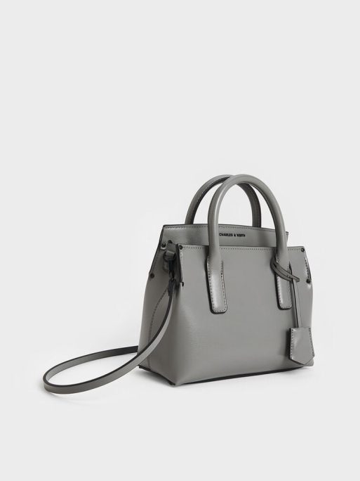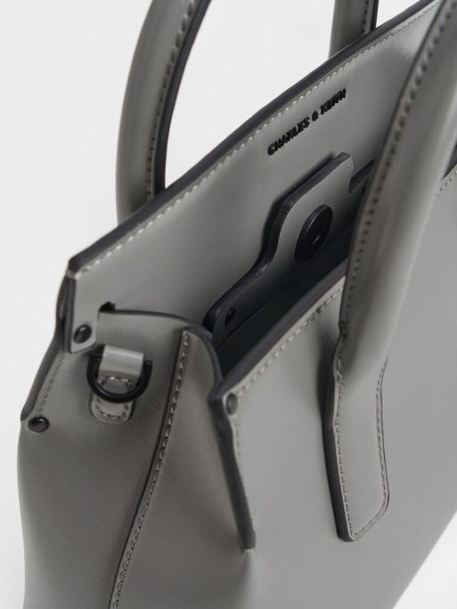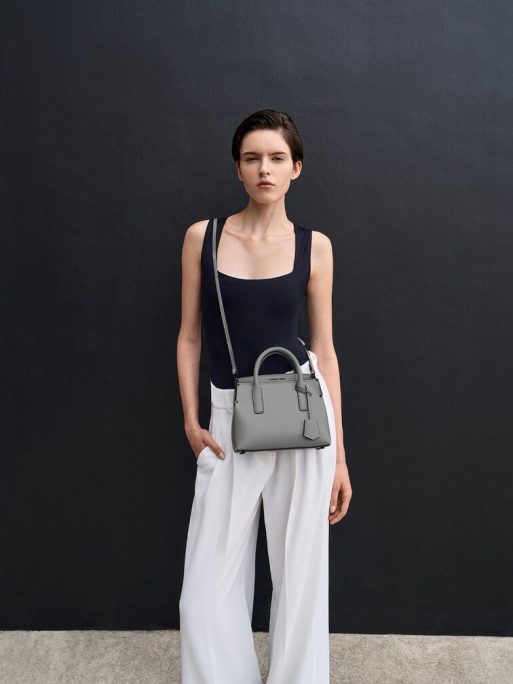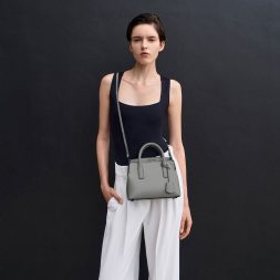 The Rene bag is the epitome of classic style, featuring double top handles, clean lines, a trapeze shape and a structured base. This version, in a light grey finish, offers a refreshing alternative to classic black while remaining equally elegant and versatile. Secured by a magnetic closure, it will keep your everyday essentials secure yet easily accessible. Carry the Rene by its sturdy top handles for a polished look, or use the adjustable shoulder strap for additional styling options.